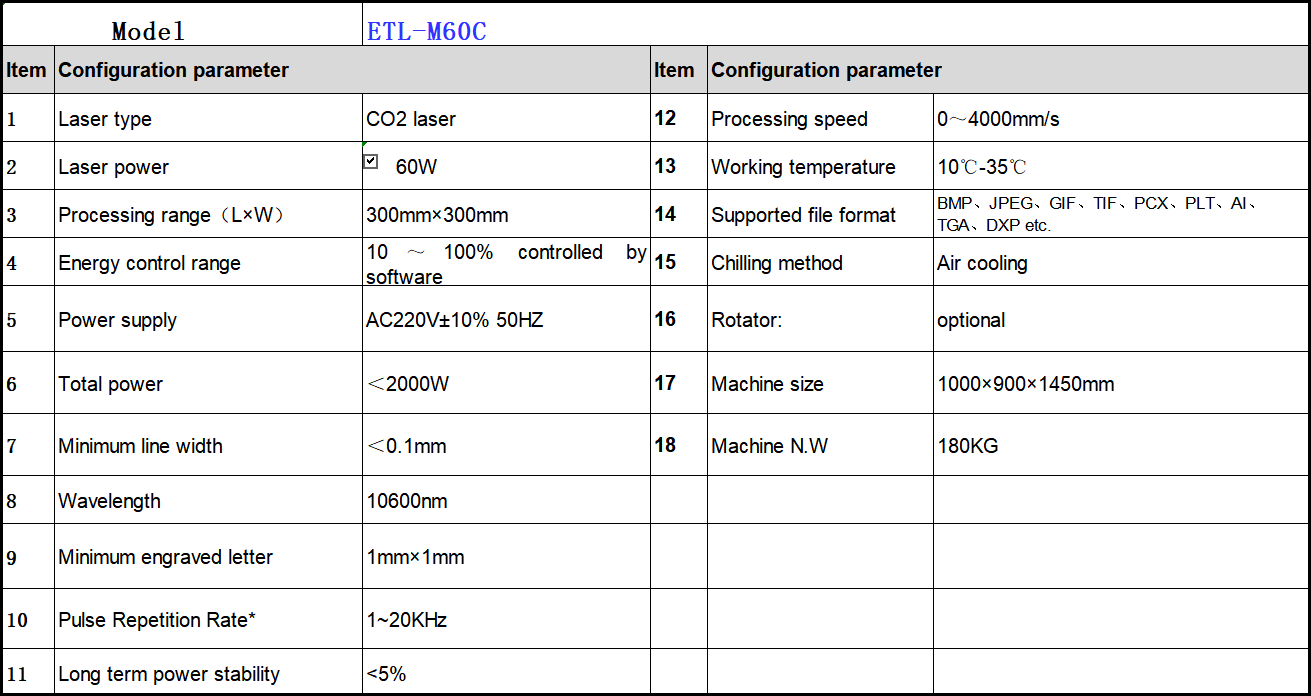ETL-M100C CO2 Laser Marking Machine