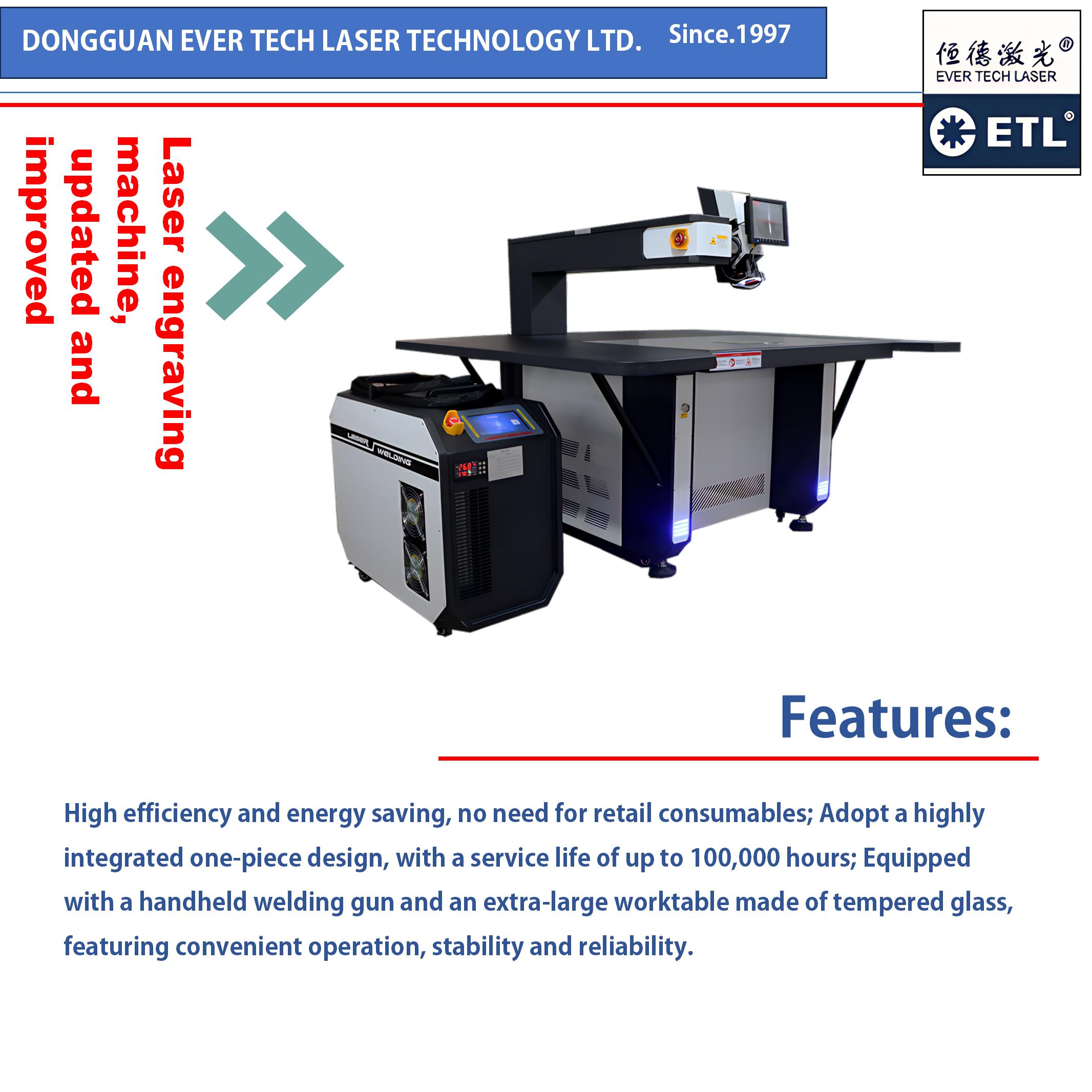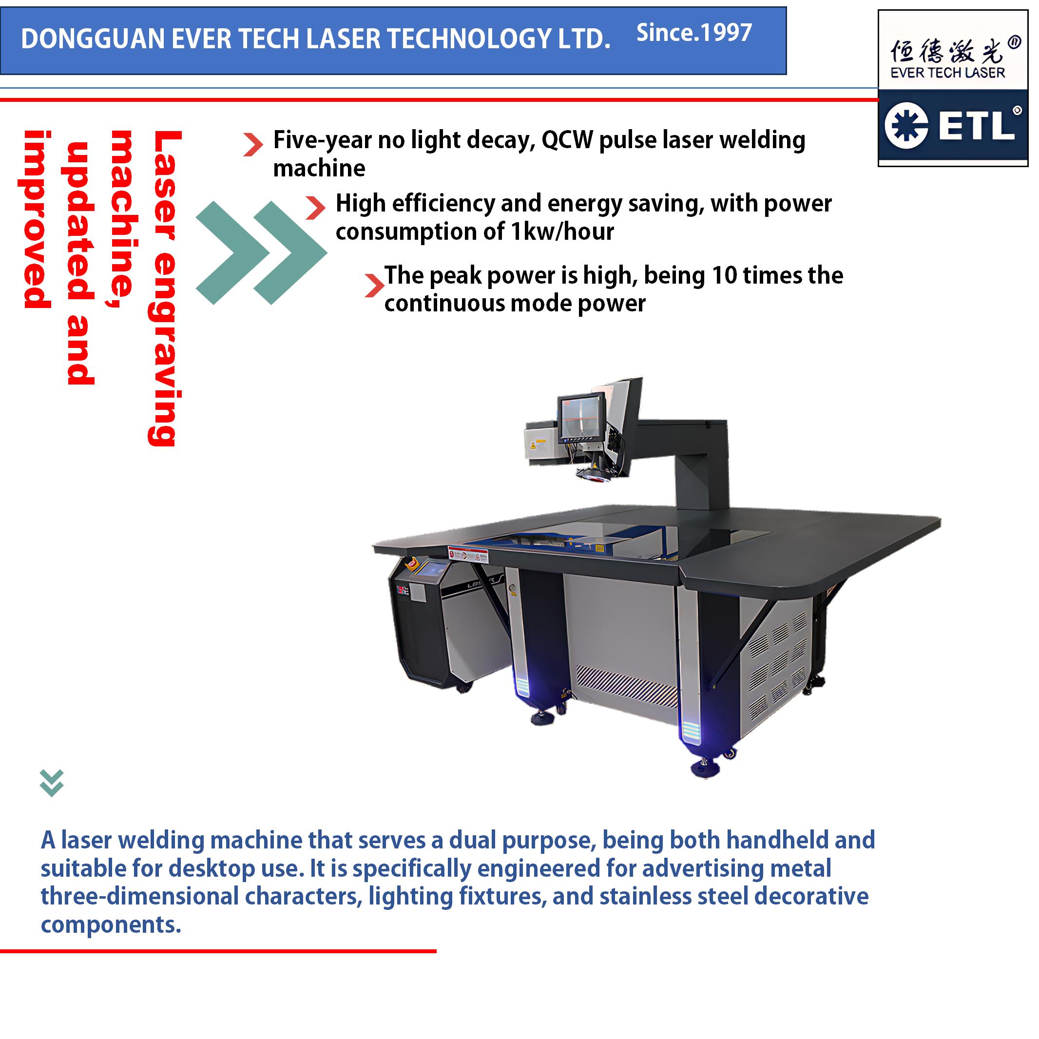 Discover the future of precision welding with the ETL-LS750. This innovative laser welding machine is engineered for both handheld and desktop use, offering unparalleled flexibility for your most detailed projects. It is the perfect solution for creating advertising metal 3D characters, intricate lighting fixtures, and flawless stainless steel decorative components.