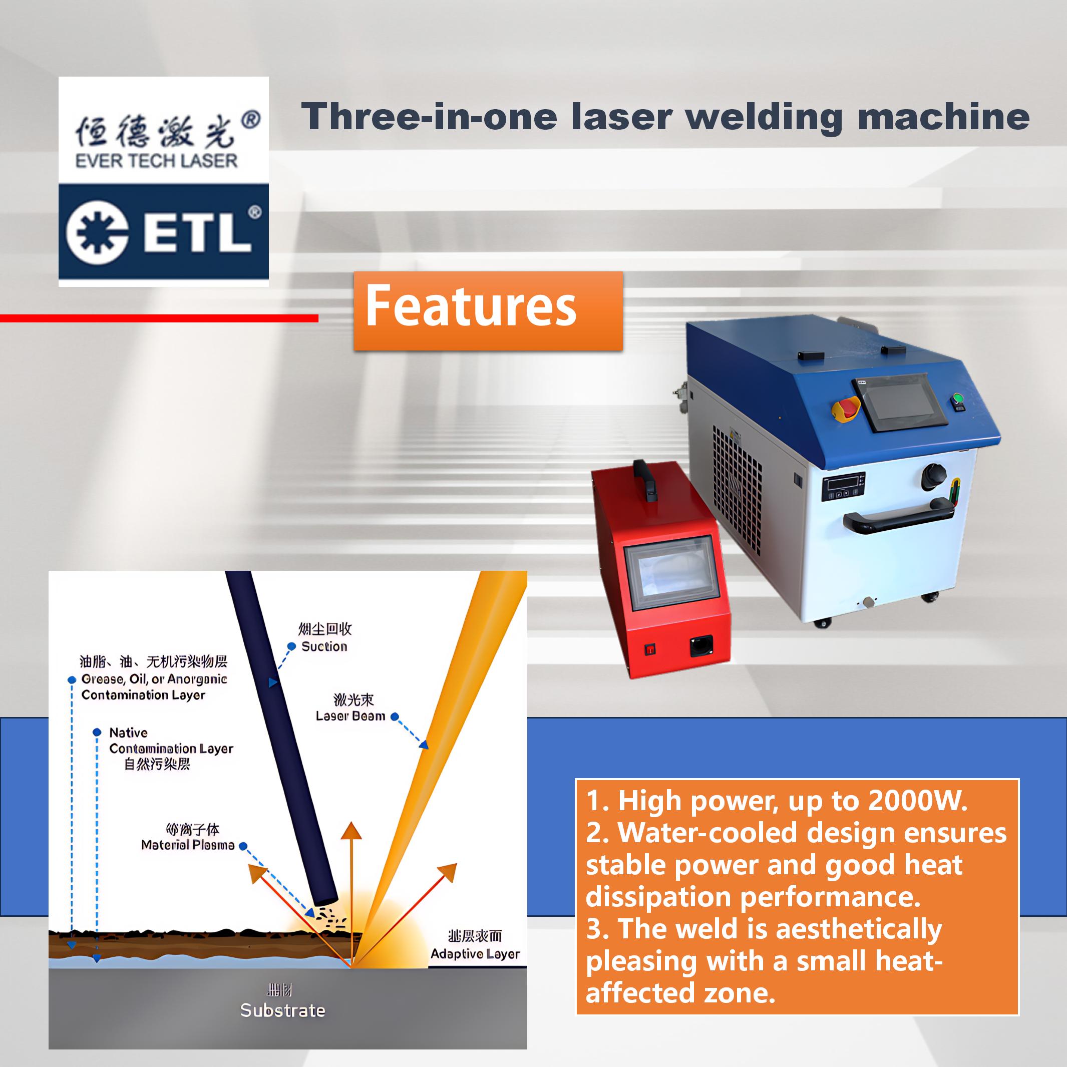 The ETL-LS2000 is designed as a multi-functional tool for metal fabrication. Its three-in-one design provides flexibility for various tasks, including welding different types of metal plates, performing precise cuts, and cleaning metal surfaces. This makes it suitable for a wide range of industrial applications, such as in the manufacturing of hardware, automotive components, and other metal-based products. For more specific details on its technical specifications, performance, and pricing, it is recommended to contact the manufacturer directly.